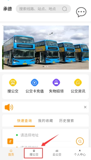 1、打开热河公交行应用后,在首页找到并点击“线路查询”功能按钮,即可进入公交线路检索页面。