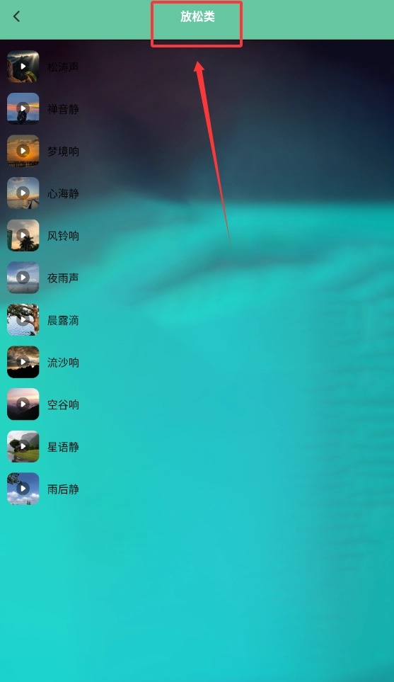 3、在心情烦闷时,可以点击放松类音乐,往下翻阅点击需要放松音乐即可。