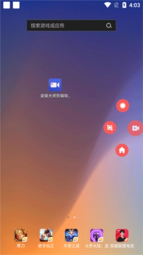 1、打开优质的录屏大师剪辑软件后,手机右侧会自动弹出一个悬浮窗。
