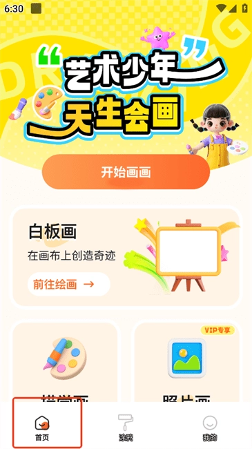 1.在【首页】找到免费的绘画功能,这里以“白画板”为例
