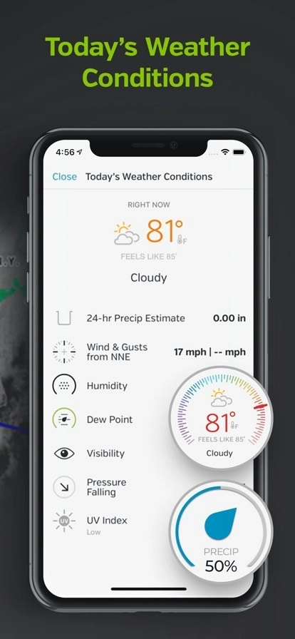 全新的Wunderground应用程序,除了配备互动雷达、卫星地图以及恶劣天气提醒功能外,还能为用户提供全球范围内最为精准的超本地化天气预报服务。