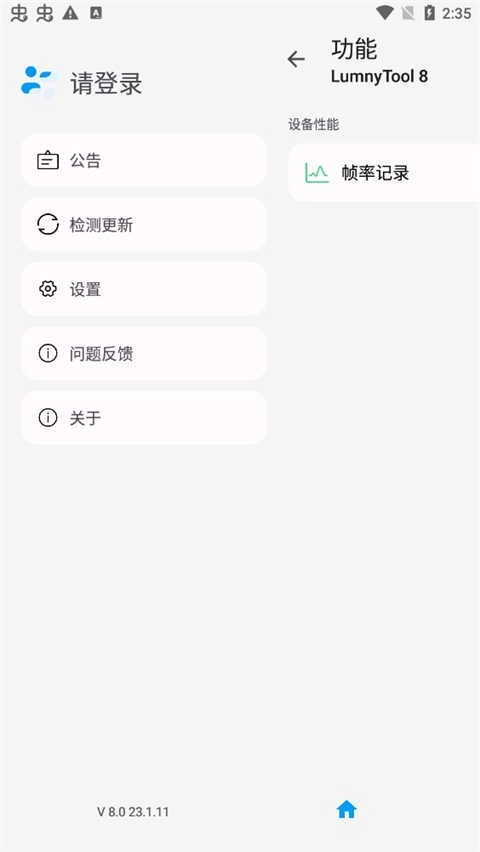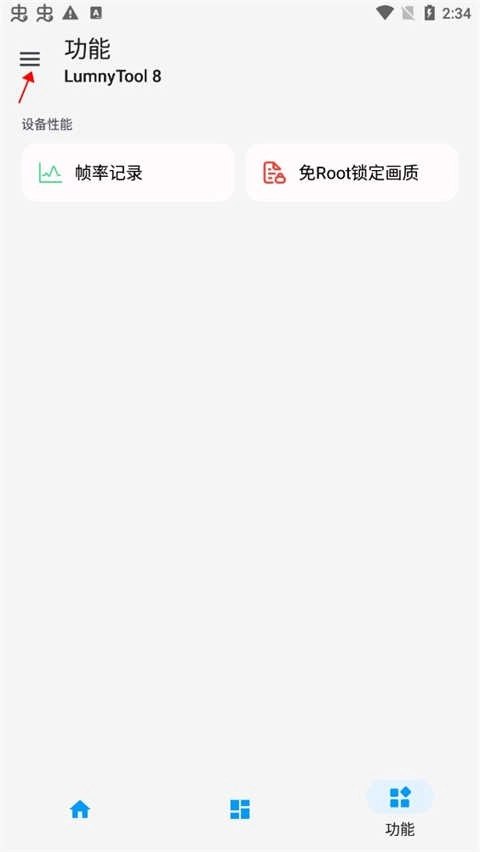 5. 点击【功能】选项,即可看到【帧率记录】与【免Root锁定画质】这两个功能选项。