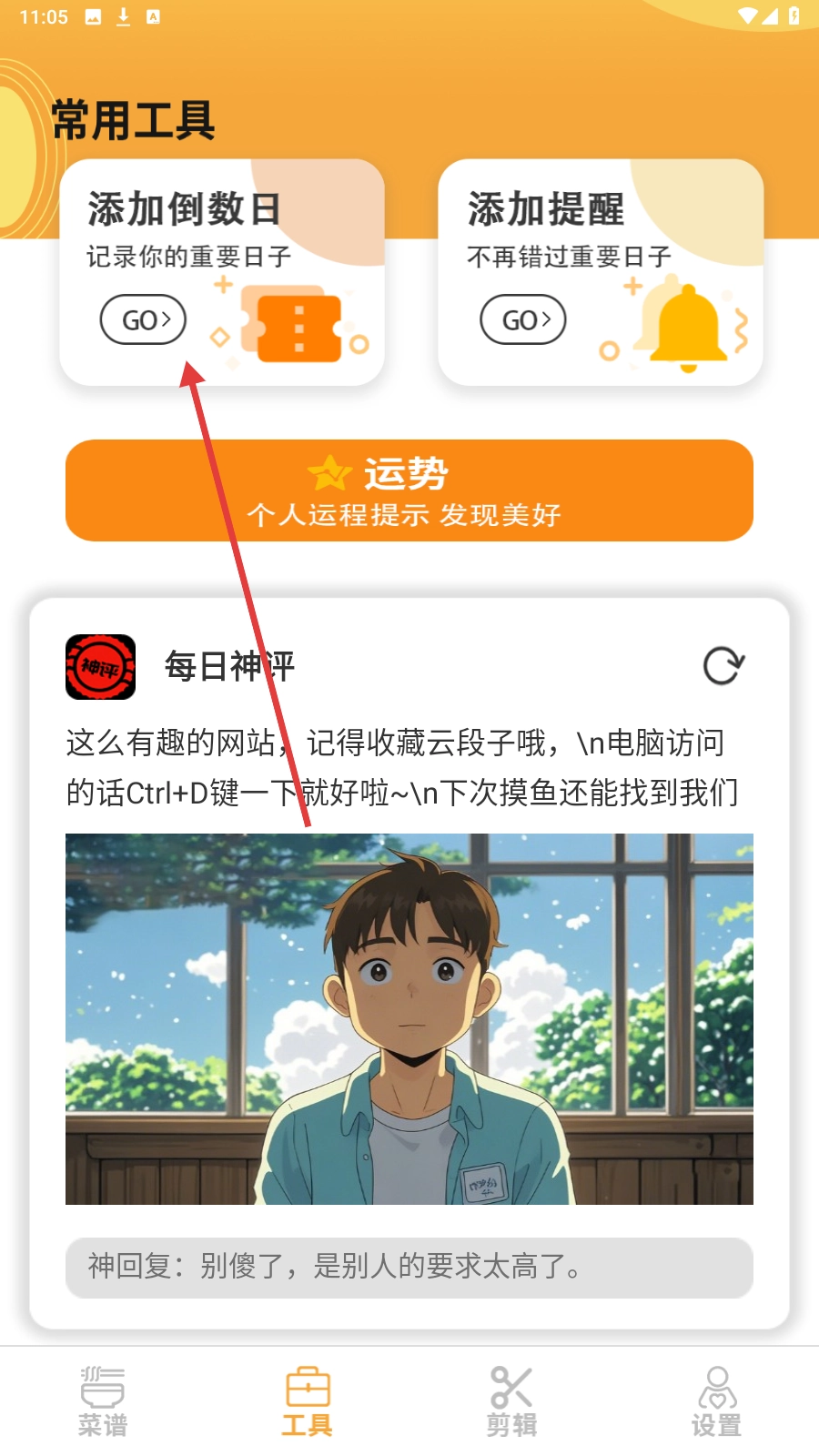 3、在工具页面,点击【添加倒数日】旁边的GO按钮,即可进入新建倒计时的界面。