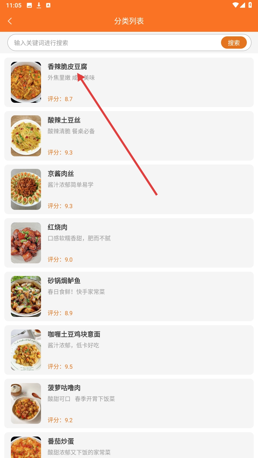 2、在分类列表页,选择目标菜品查看菜谱。