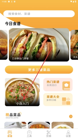 1、进入菜谱页面后,点击【小白入门】板块即可查看适合新手的菜品。